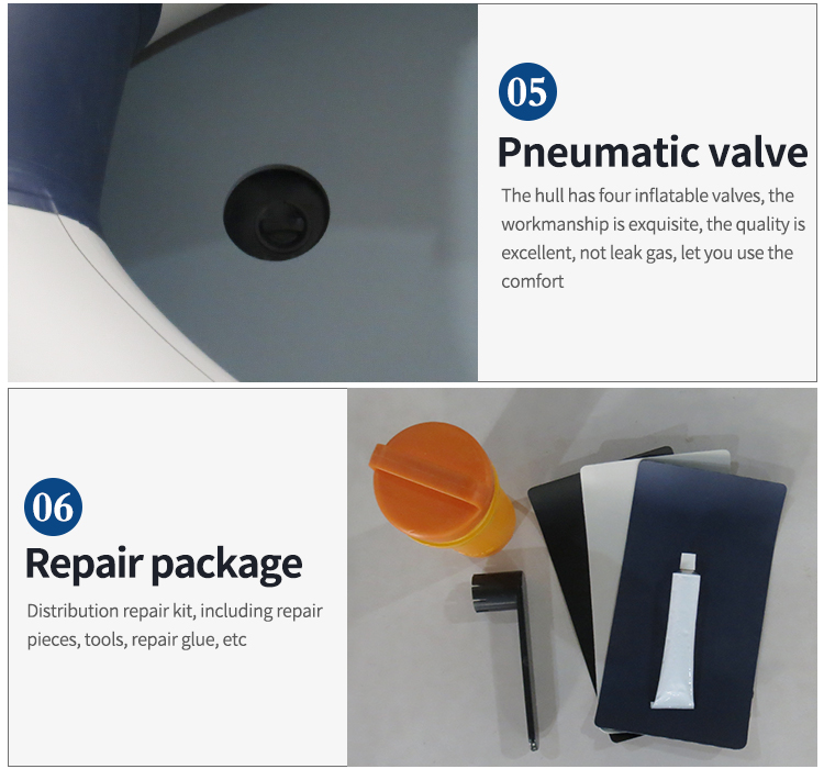 Packaging:The boat body in a woven bag, the floor in a woven bag, then in a carton.